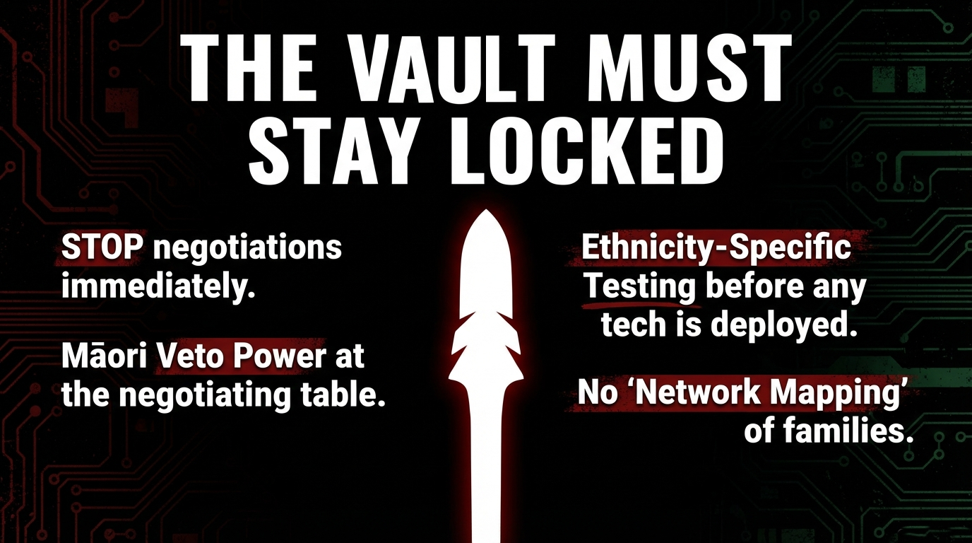 The vault must stay locked. The key must stay in Aotearoa. And the people whose whakapapa is encoded in that data must have the final word on who opens the door.
