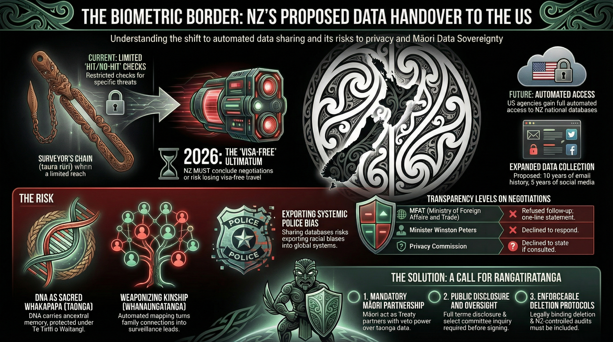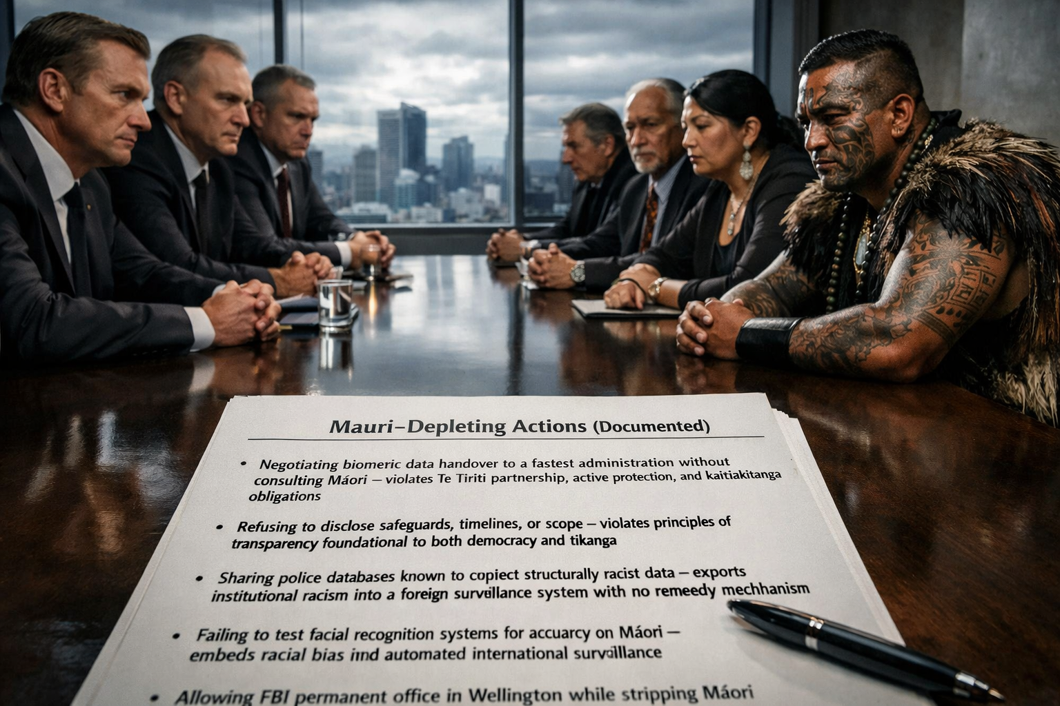 To hand Māori biometric data to a foreign government — without consultation, without consent, without safeguards — is not merely a privacy breach. It is a Te Tiriti breach. It is the Crown doing what it has done for 186 years: treating the bodies of tangata whenua as raw material for extraction.
