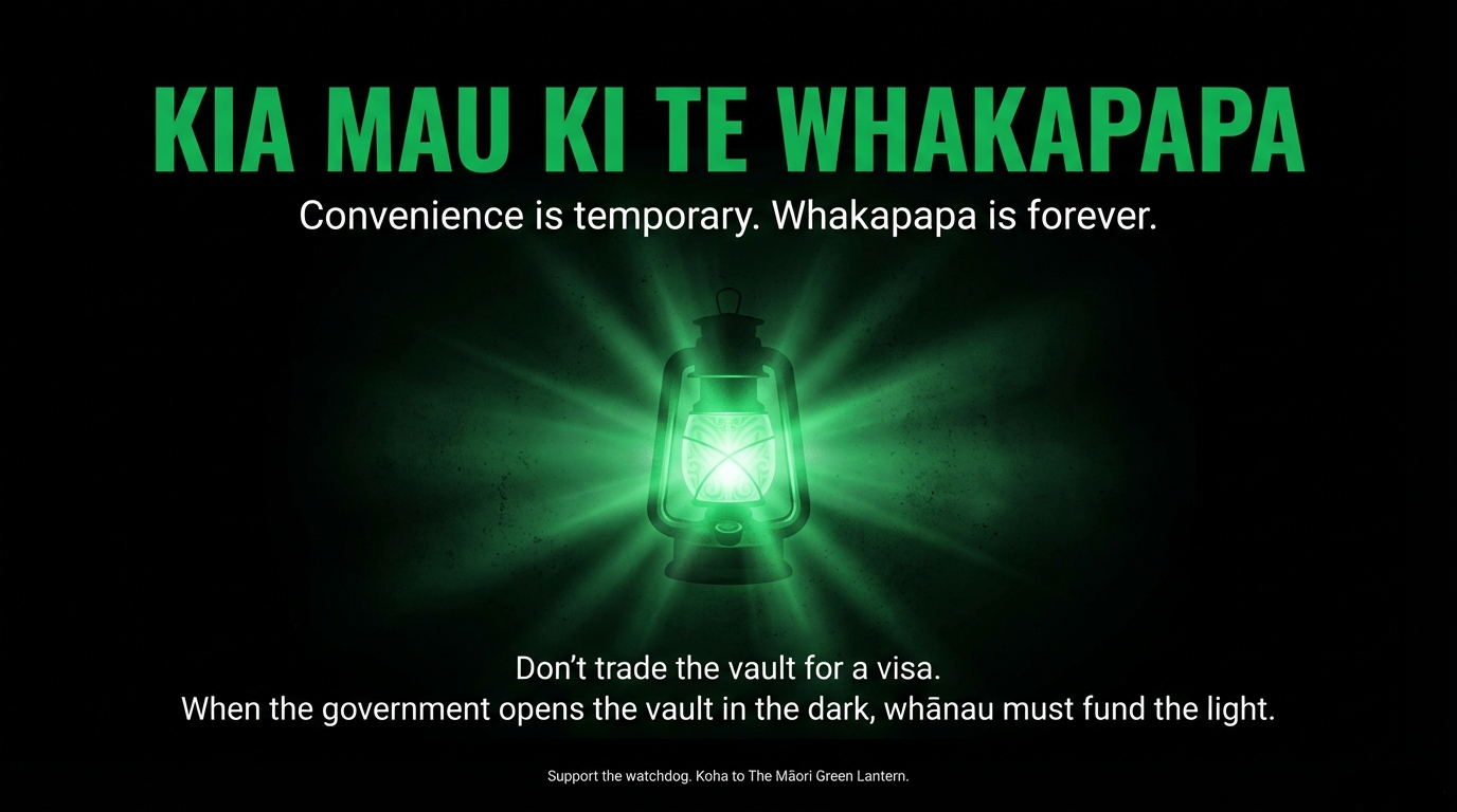 It signals that rangatiratanga includes the power to fund our own sentinels — because when the government opens the vault in the dark, whānau must fund the light.