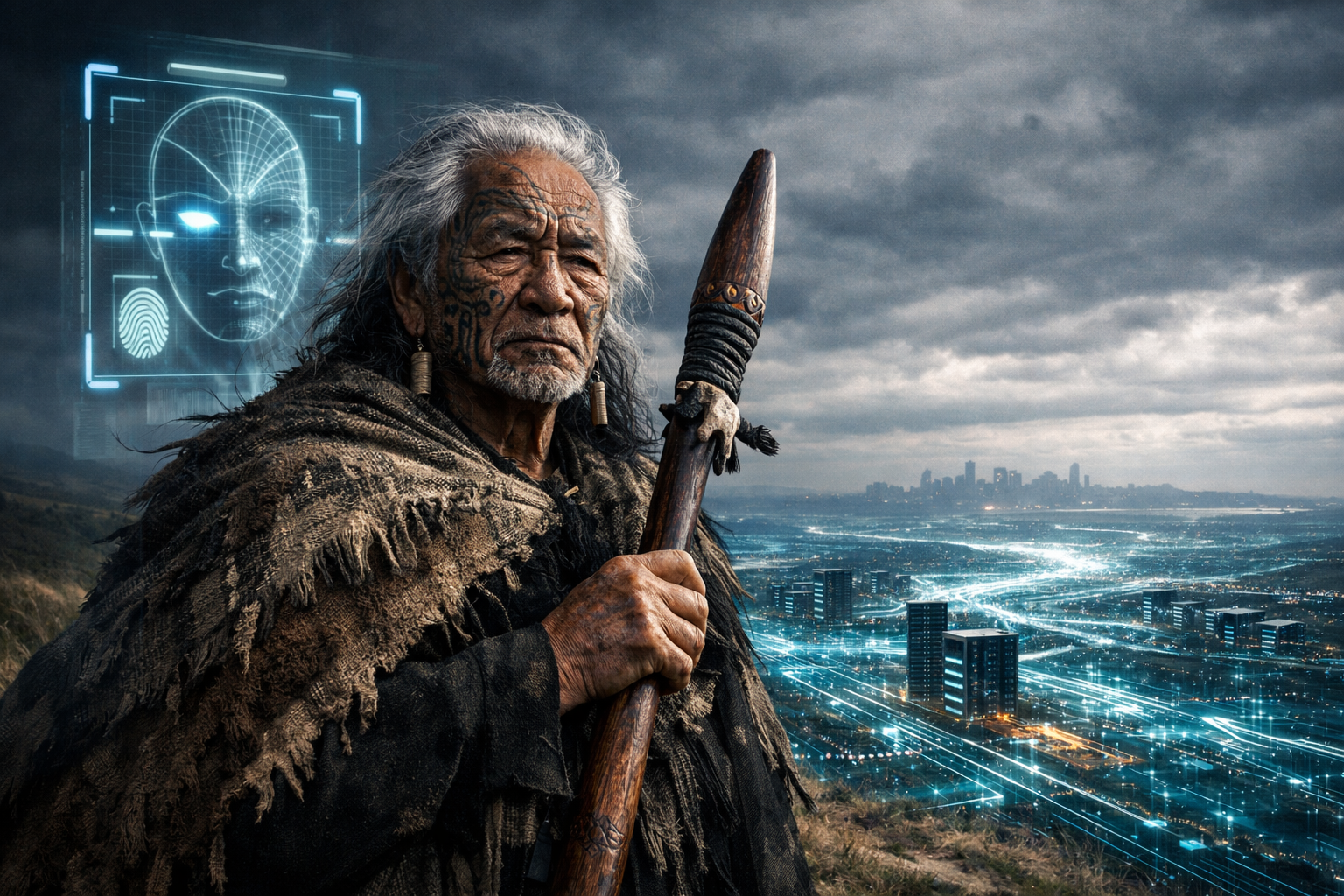 The taiaha is the same. The theft is the same. Only the medium has changed: from surveyor's chain to biometric scanner. From Native Land Court to algorithm. From Crown grant to automated database access.