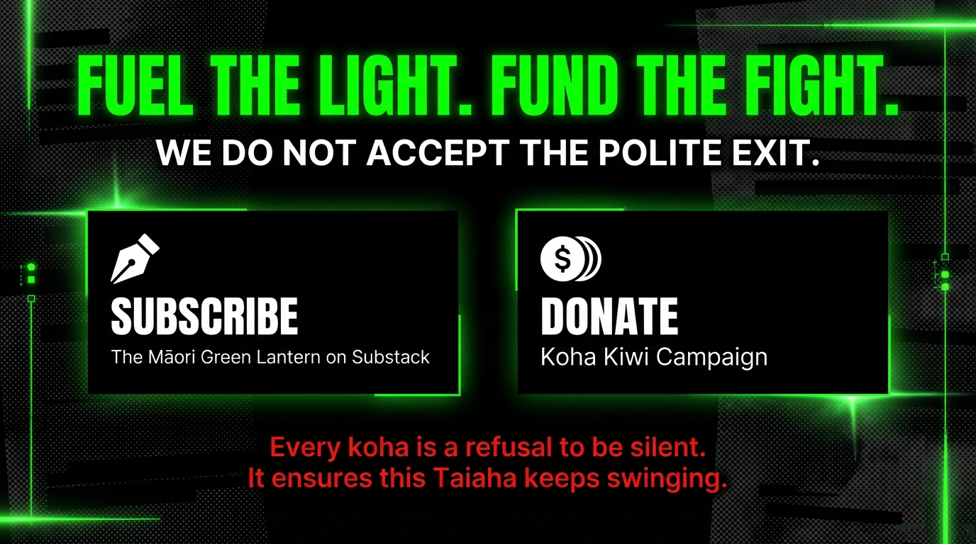 If you are unable to koha, kei te pai. Subscribe or follow The Māori Green Lantern on Substack, kōrero about these essays, and share them with your whānau and friends – that is koha in itself, and it is exactly how this kaupapa has grown across platforms like Substack and community posts on Facebook.