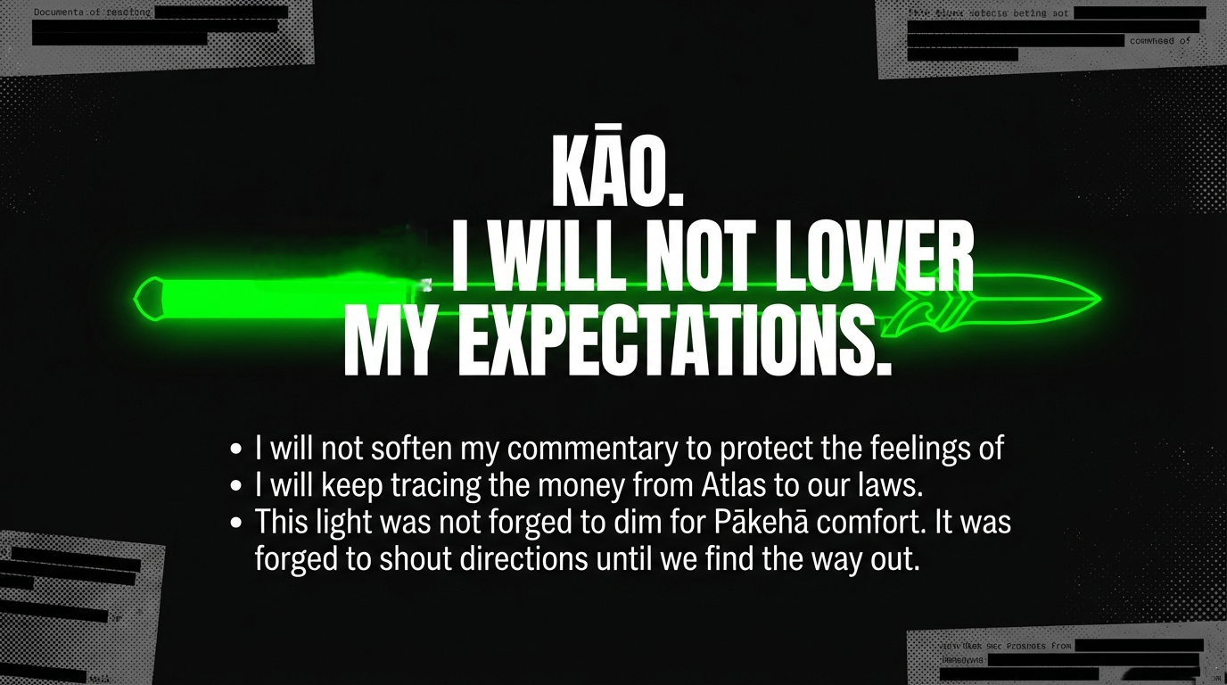 My answer to all of them is simple: kāo. I will not lower my expectations. I will not soften my commentary to protect the feelings of those who helped build or defend the very structures I am dissecting. I will keep naming the pattern, linking Hipkins’ messaging to the treatment of Henare and Rurawhe, tracing the money and networks from Atlas to our own think tanks, and exposing attempts – whether by current leaders, retired MPs, or billionaires hiding behind “non‑profits” – to corral Māori analysis back into safe, Pākehā‑approved lanes, as I have already begun in “Kua Tae Te Wā: The Polite Execution of Peeni Henare and Labour’s Manufactured Māori Exit”, “How Labour and the Greens turned their backs on Māori”, and “Why Peeni Henare walked away from Labour”.