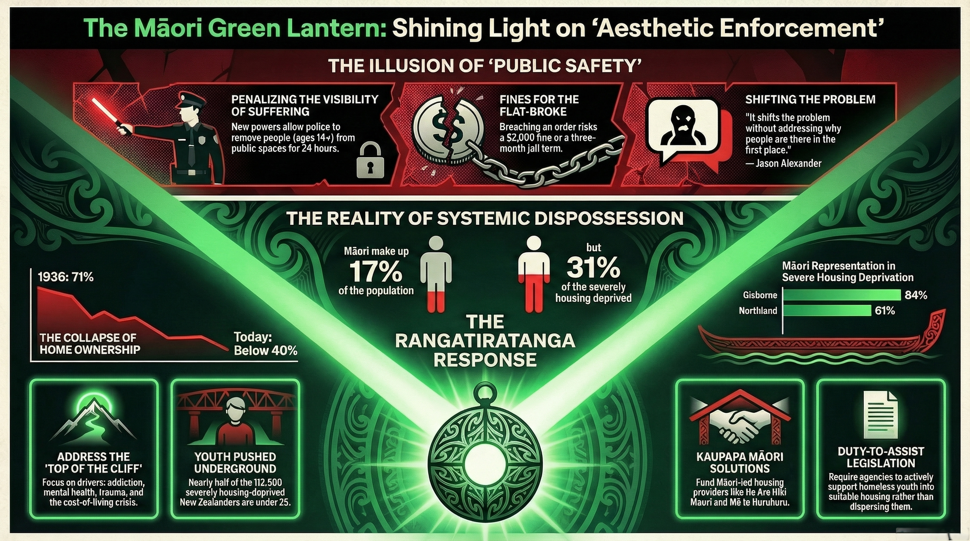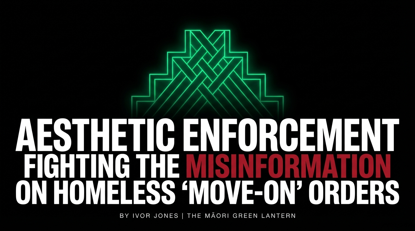 - "The NZ Neoliberal Pantomime: Why Every Major NZ Party Serves the Same Masters — and the Wealth Tax That Would End the Charade" (5 March 2026) — which traces the ideological architecture behind policies exactly like this one, demonstrating that the move-on order is not an anomaly but a product of a system designed to protect capital and manage the visible poor. Available at themaorigreenlantern.maori.nz.