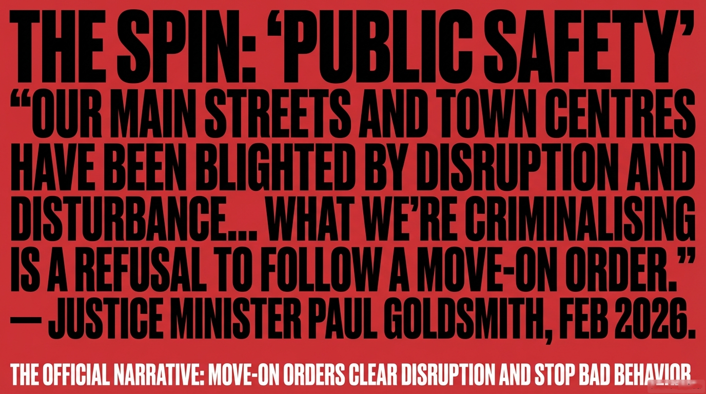 Connection Three: Justice Minister Goldsmith — the minister responsible for these orders — is the same minister whose office deliberately dodged Parliamentary rules to insert provisions into the Crimes Amendment Bill that had been ruled out of scope. This is a man who uses legislative process as a weapon. His move-on orders are consistent with a pattern of using law to harm the most vulnerable while protecting the most powerful.