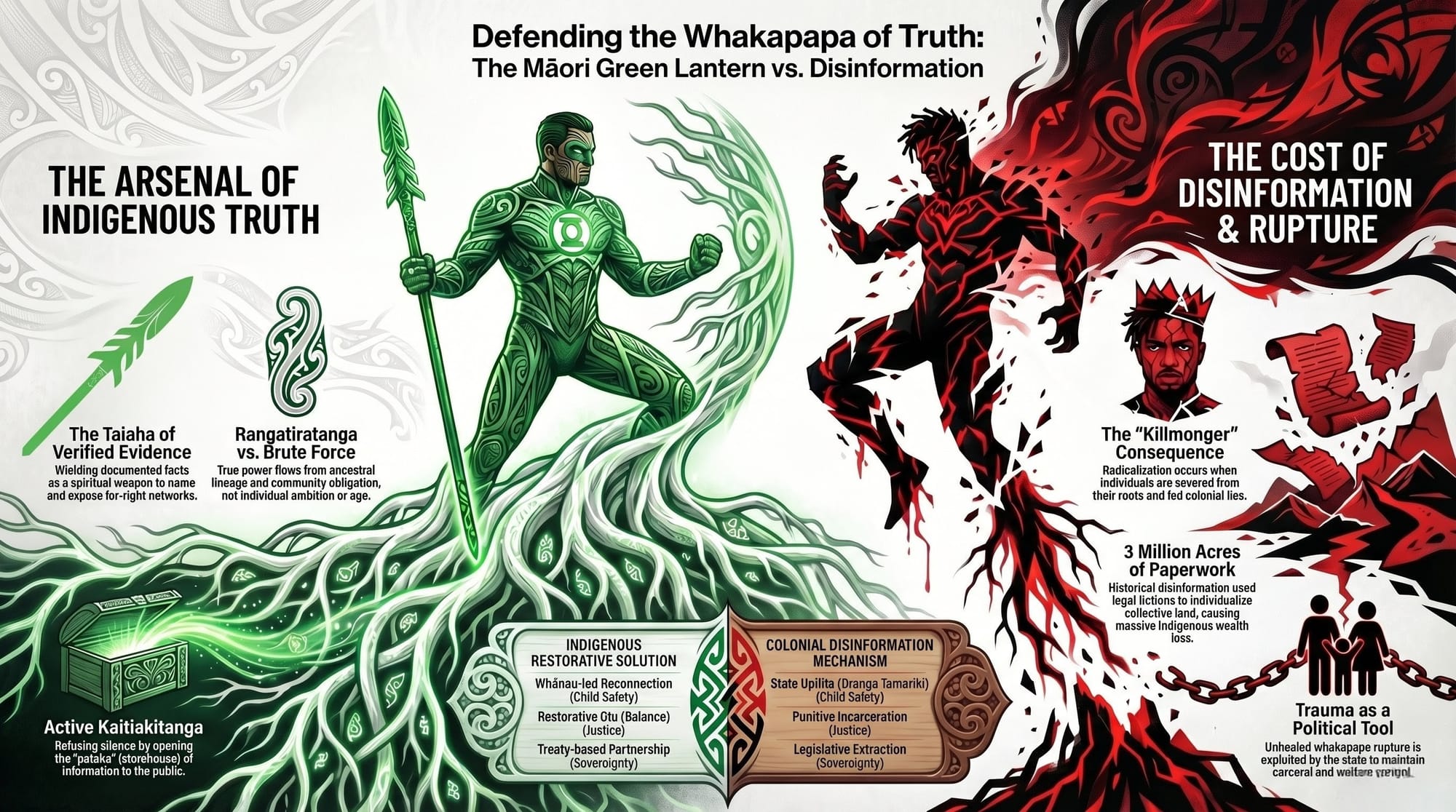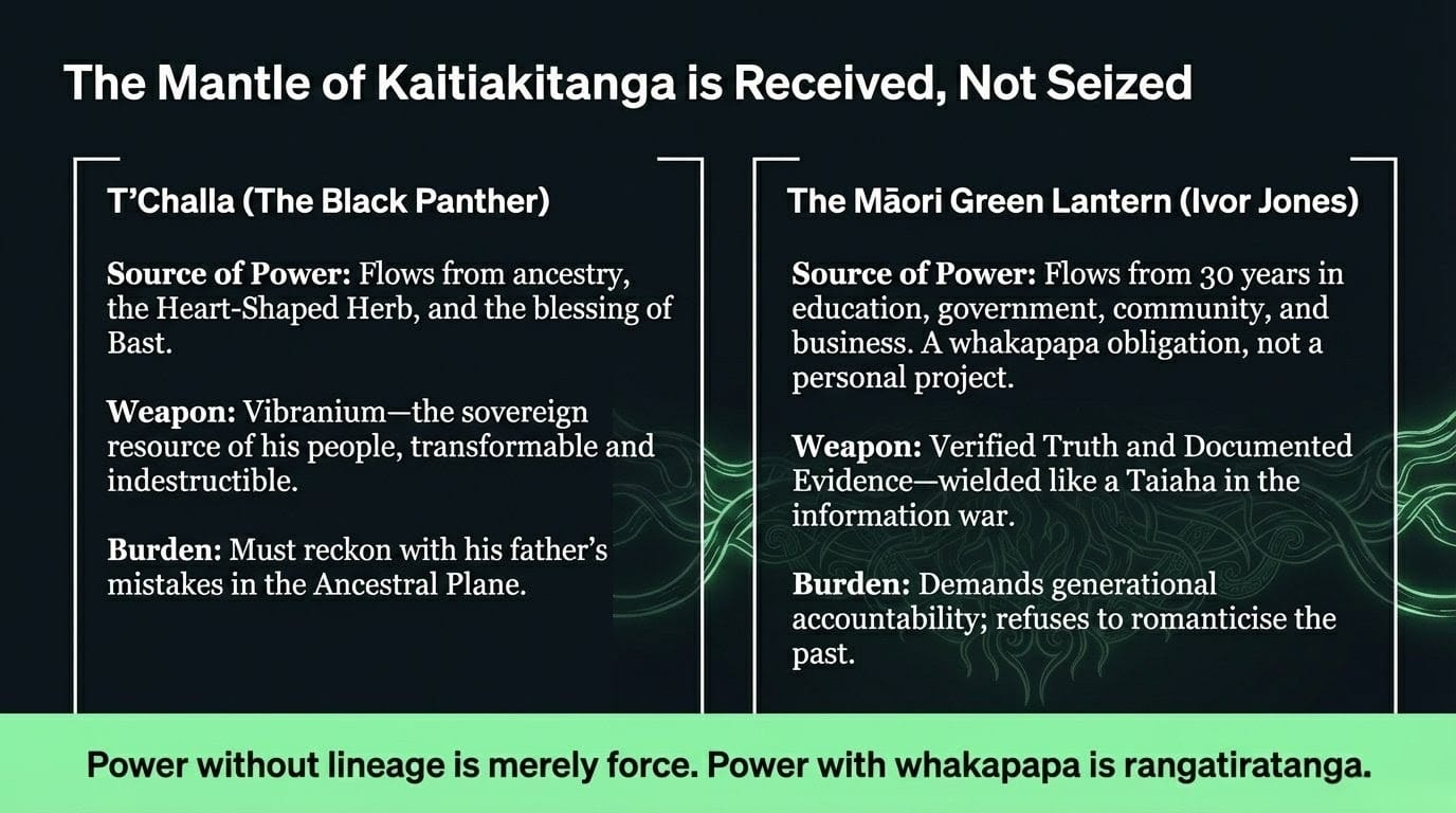 Here is the critical insight Black Panther delivers — and that the Māori Green Lantern has been weaponising in the context of Aotearoa's information wars: