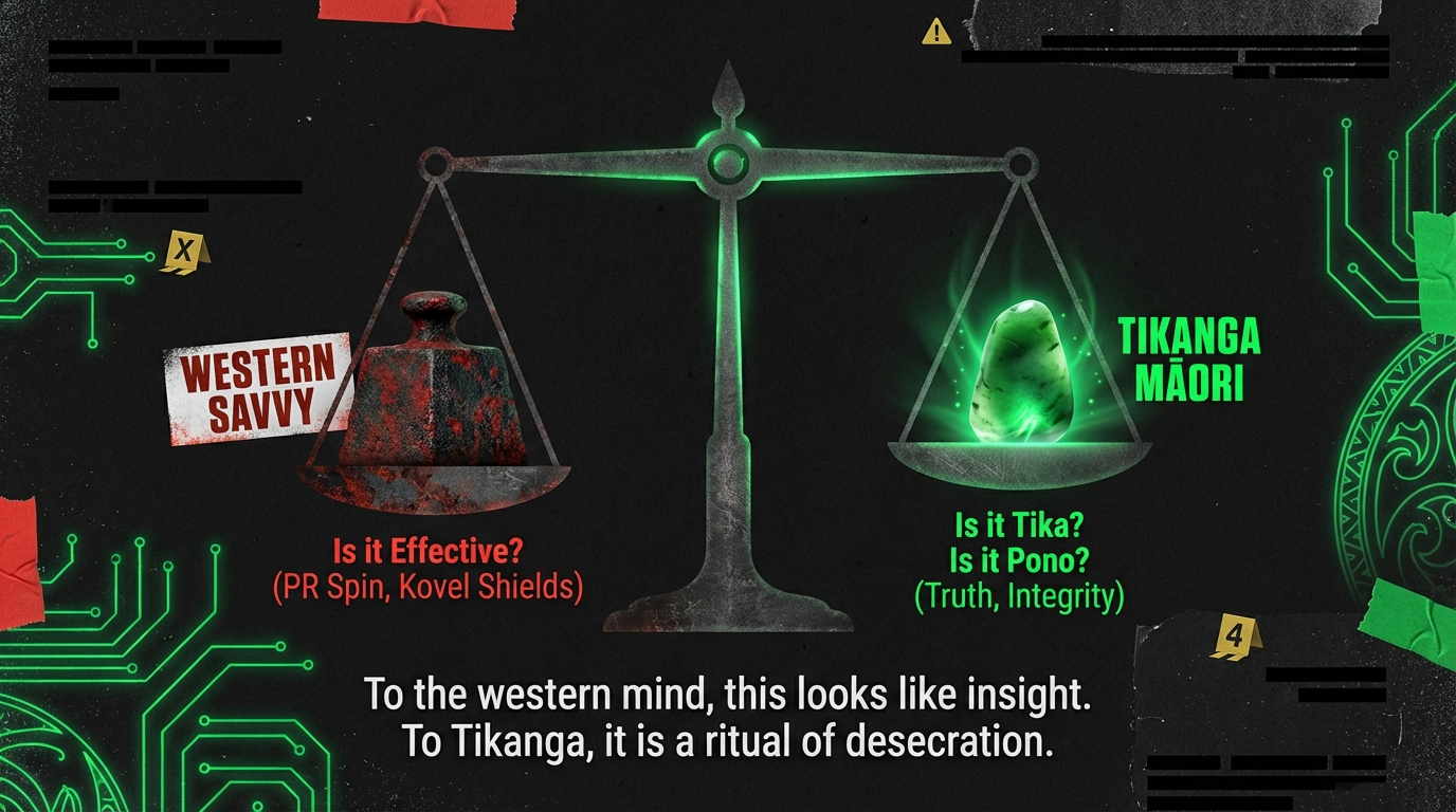 To a western audience trained to think “everyone does PR,” this might seem normal. To tikanga, it is a direct mauri‑drain: