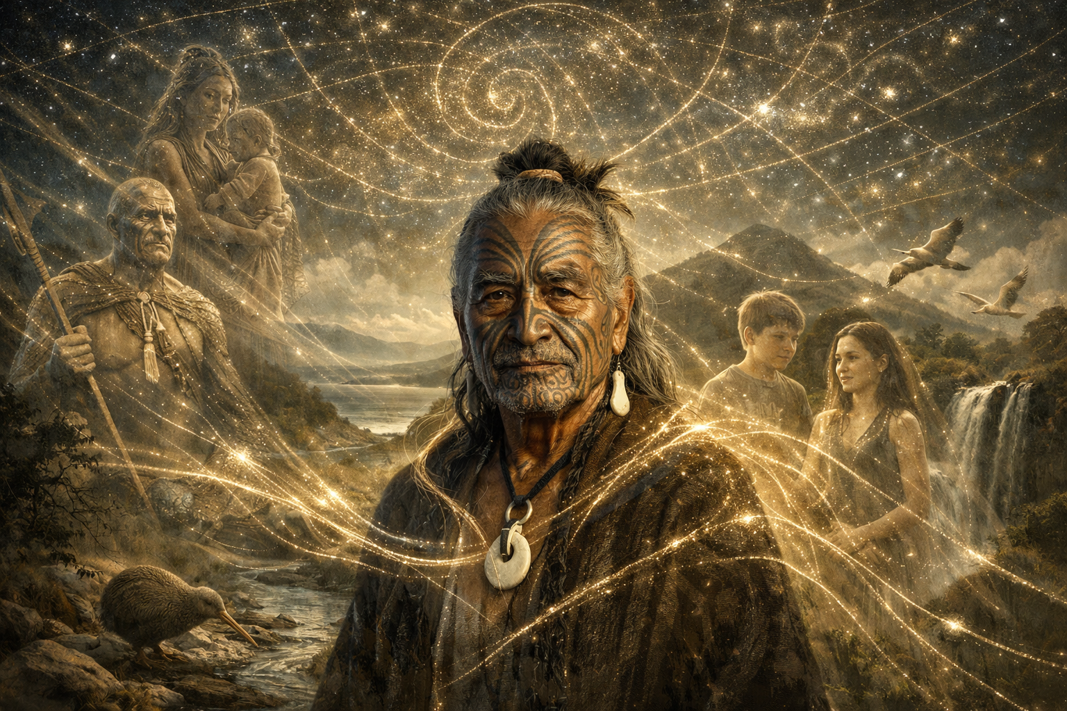 —not just human bloodlines, but the genealogical relationships between people, ancestors, future generations, land, water, stars, and all living beings. In the Māori worldview, to be is to be in relation. This relational ontology creates a radically different temporal framework.