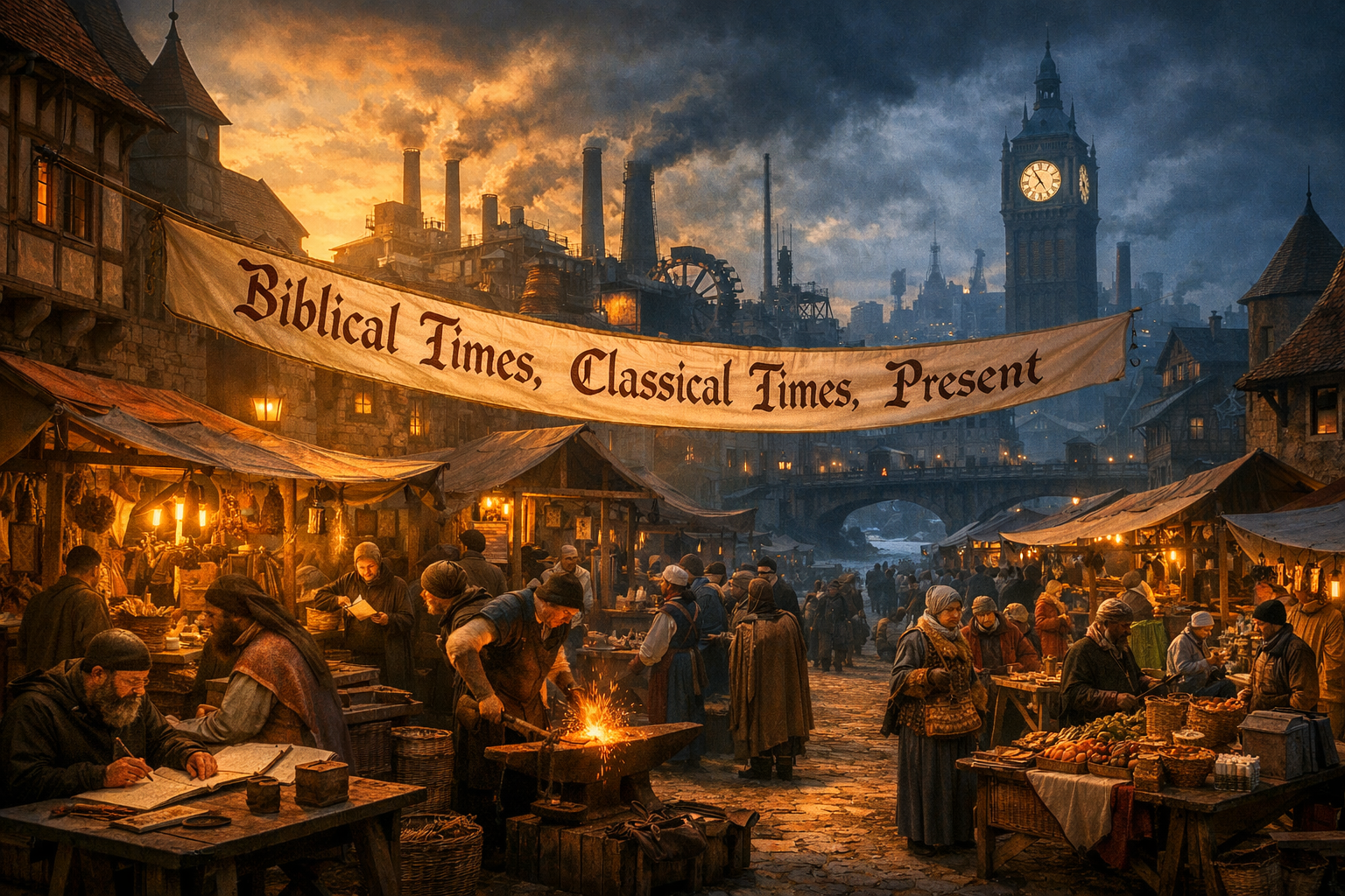 biblical times, classical times, and the present, with the future collapsed into apocalyptic expectation.