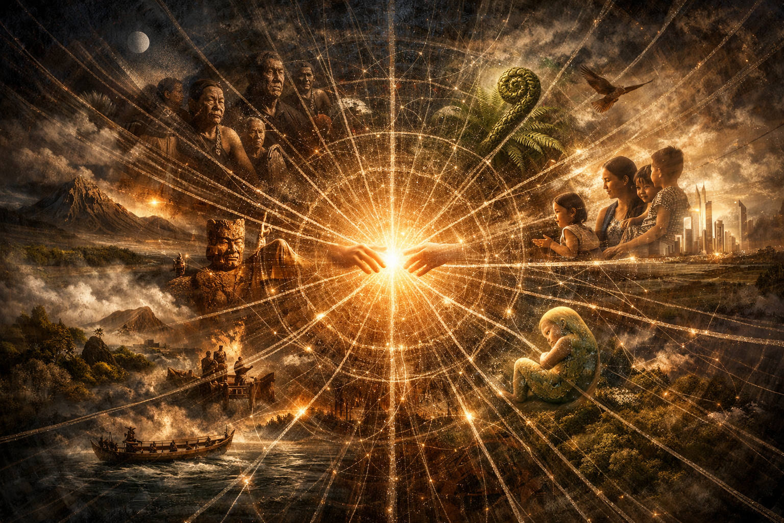 it insists that the living carry obligations to ancestors and mokopuna, that decisions ripple infinitely across generations, that to act is to act within an unbroken genealogical web.