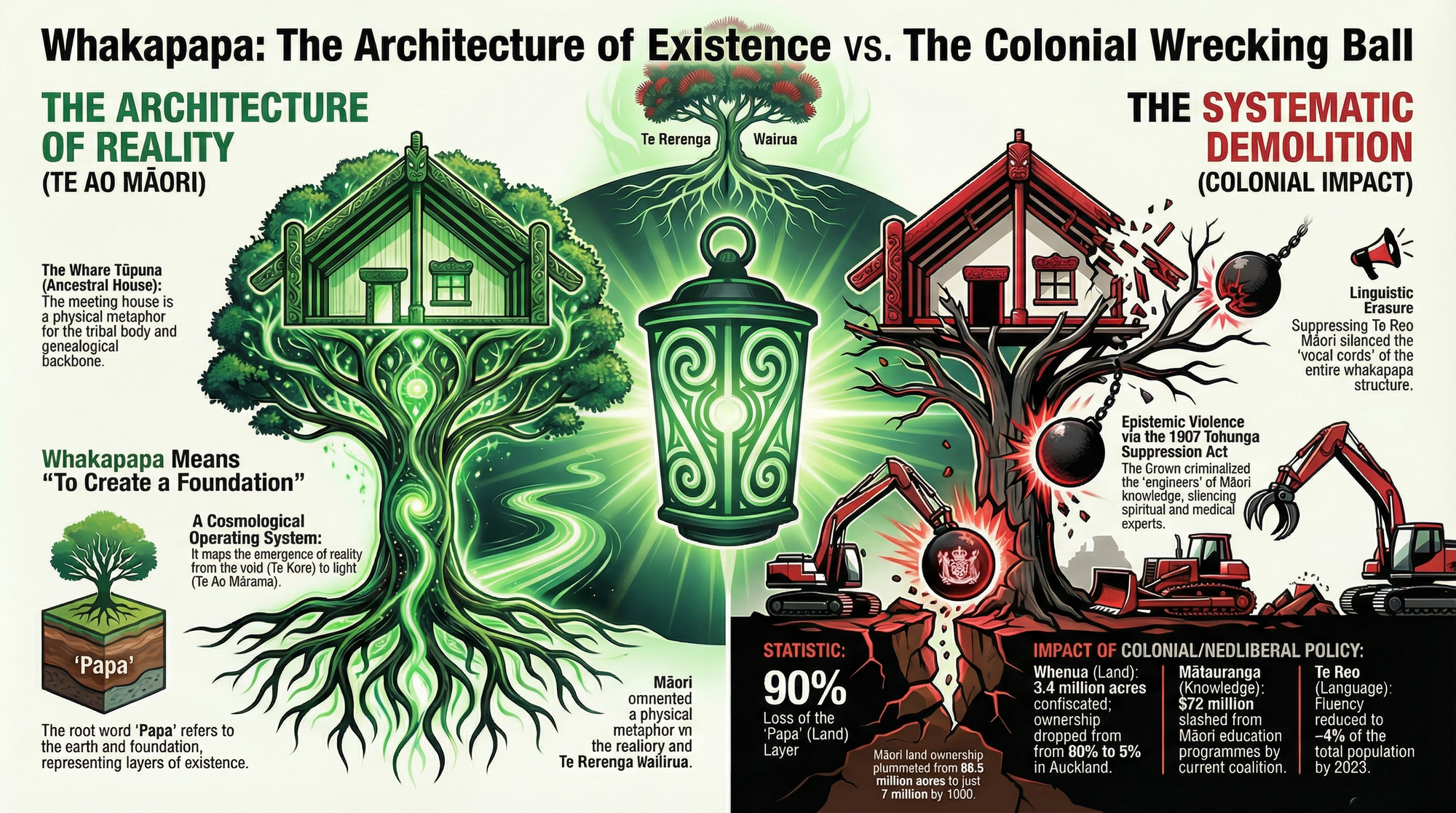 "WHAKAPAPA - THE LAYERS THEY BURIED: How a White Supremacist Government Demolished the Architecture of Māori Existence and Called It "Progress"" - 14 February 2026