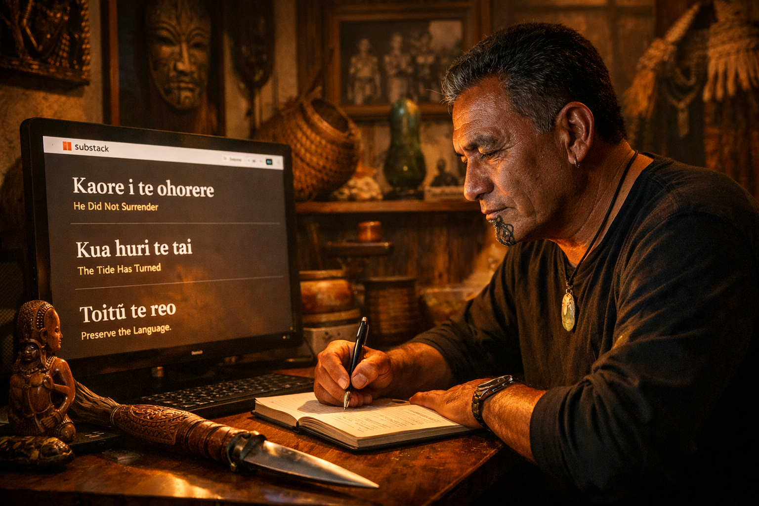 essays written in te reo Māori, published on Substack to a paying audience of whānau who understand that supporting truth-telling in te reo is itself an act of sovereignty.
