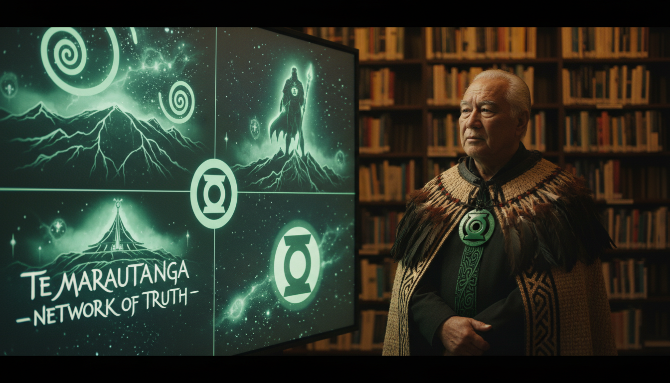 Don Edmonds—a man descended from one of the first Māori journalists, a man who carries the language, who protects the knowledge, who publishes for whānau—looked at the work of the Māori Green Lantern and said: