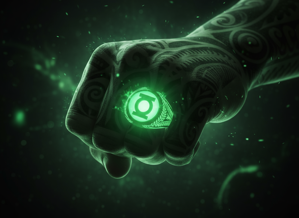 The taiaha empowered by the Ring - symbol of The Māori Green Lantern’s mahi exposing injustice