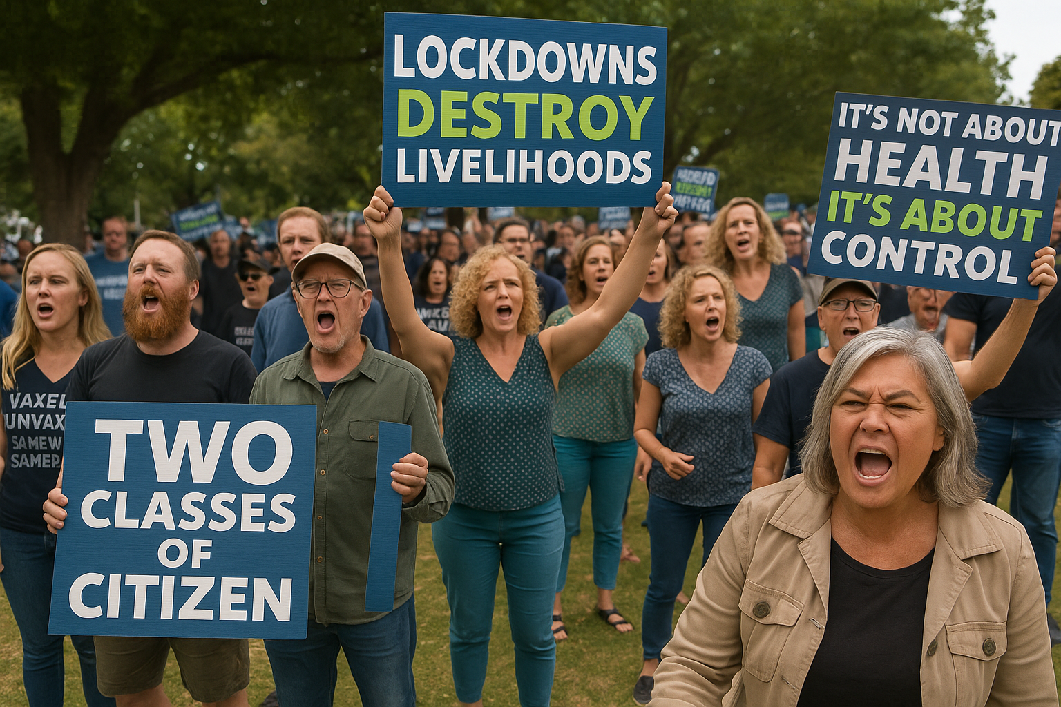 Anti-vaccination protest rally showing the environment where far-right recruitment occurs