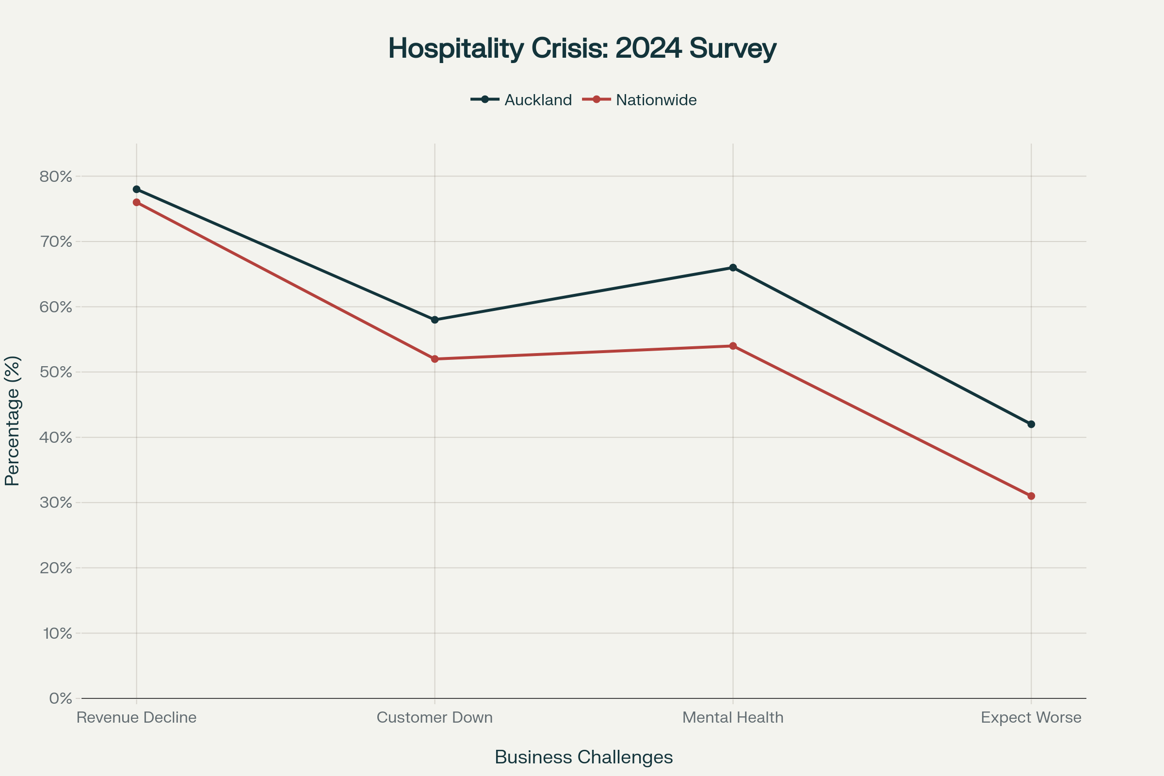 The crime data tells a devastating story: Hamilton's crime victimisation rate has skyrocketed to 1,314 per 10,000 residents in 2024, the highest in the Waikato region. Yet rather than connecting this to record-breaking hospitality industry failures, where 78% of Auckland businesses report revenue decline and 66% cite worsened mental health among workers, McLean and his cohort demand punitive measures.