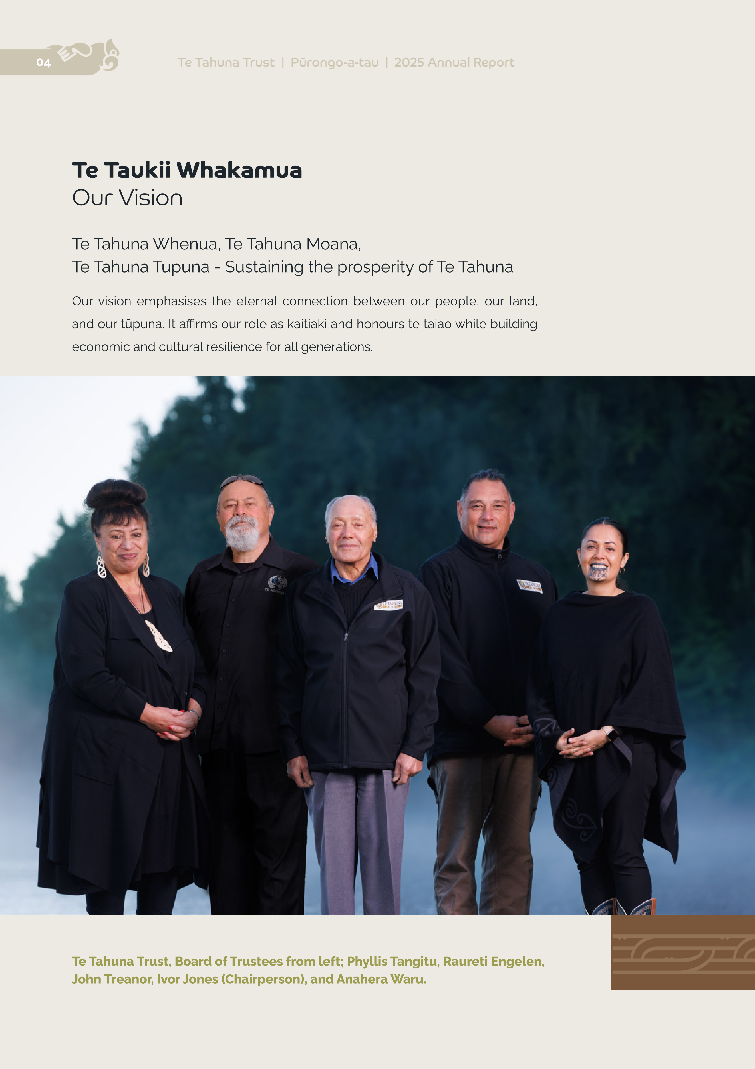 High participation rates reflect several factors. First, our new digital platform at tetahuna.maori.nz improves accessibility and transparency, allowing beneficial owners to access financial reports, grant opportunities, and Trust communications. Second, our brand transformation with Rotorua-based Redspot Creative Studio created powerful visual identity around three carved pou—Pou Tahiwihiwi representing the past, Pou Tawhitinui representing the present, and Pou Te Waiwherowhero representing the future—beneath a unifying pare. This positions Te Tahuna as a forward-thinking organisation capable of partnering with international bodies and government agencies while maintaining foundational responsibilities to whenua and people.