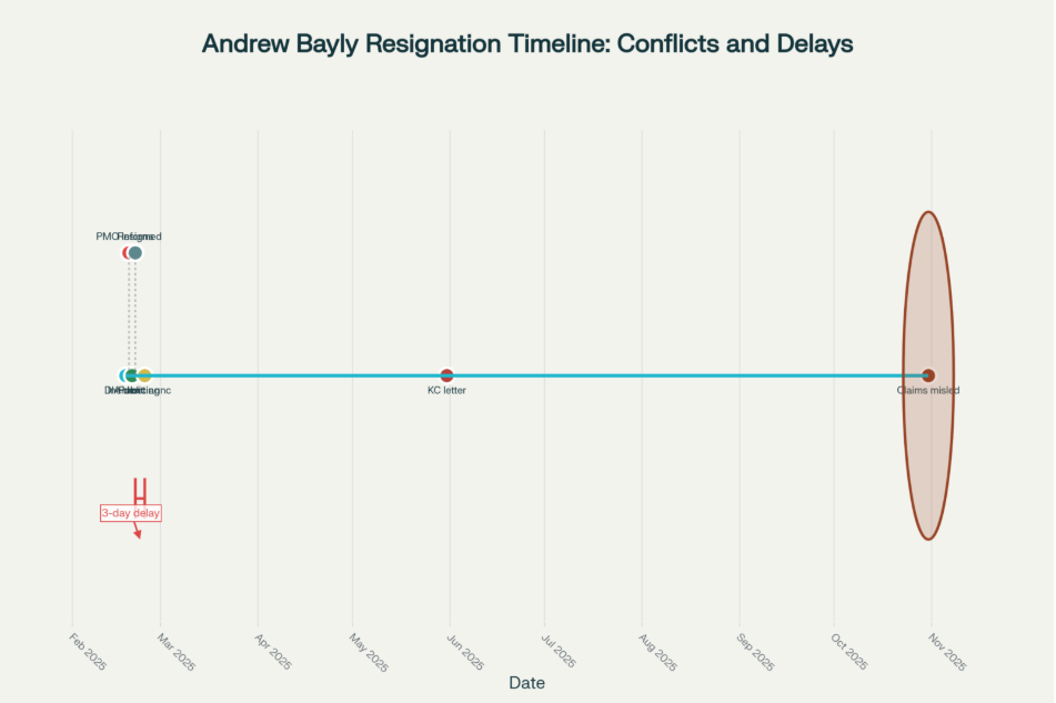 Timeline exposes suspicious delays and conflicts: Bayly waited 3 days to announce resignation, then appeared 8 months later on the show hosted by Barry Soper’s wife to claim he was misled - a textbook example of sympathetic media access for powerful elites.