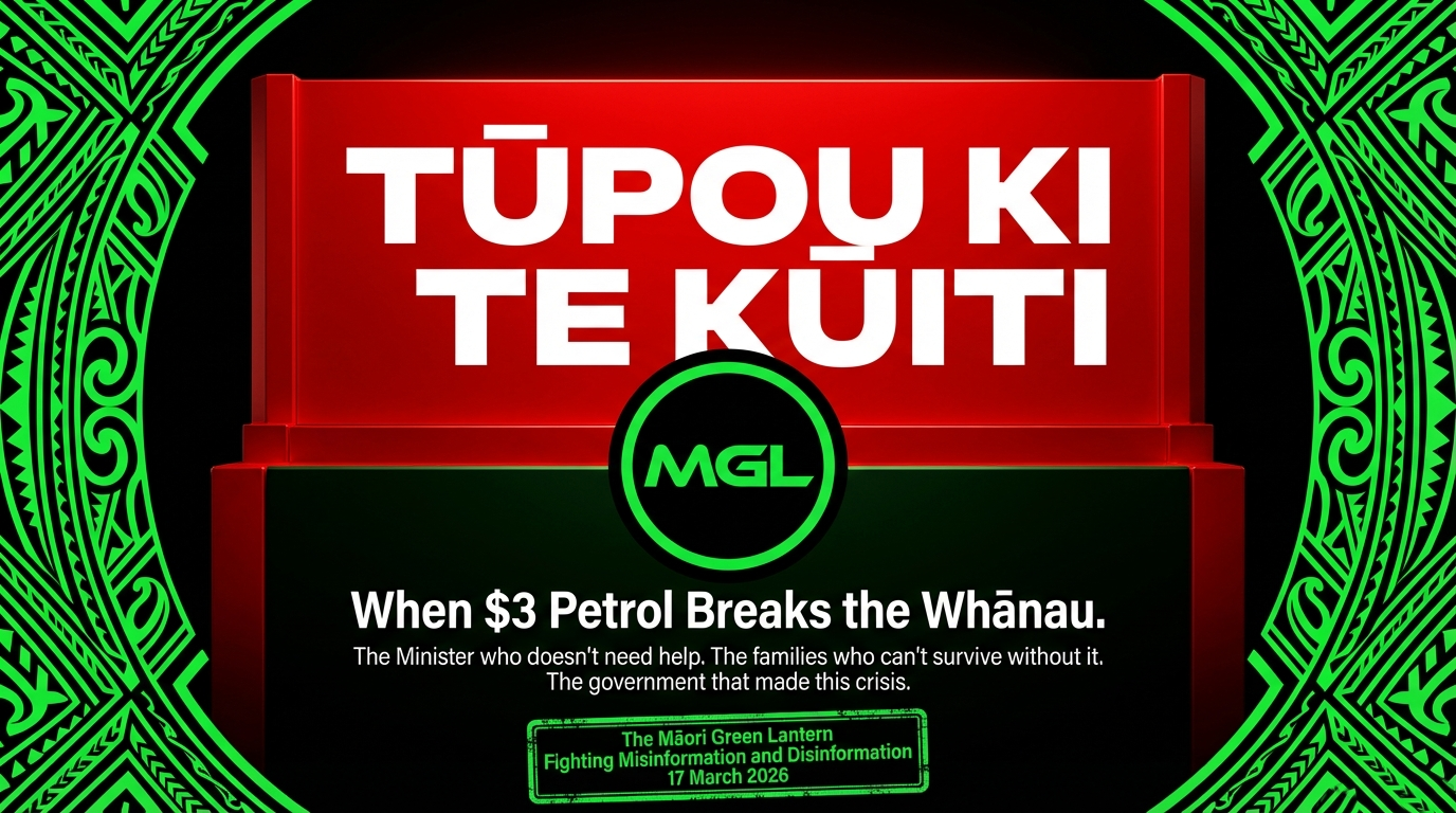 Previous MGL Coverage: Read "WHEN THE PETROL TANKER RUNS DRY" — Ivor Jones's deep investigation into how the National Fuel Plan leaves Māori at the very bottom of the priority queue in any rationing scenario. The plan prioritises Corrections and Defence. Whānau come last.