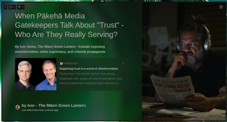 "When Pākehā Media Gatekeepers Talk About "Trust" - Who Are They Really Serving?" - 30 June 2025