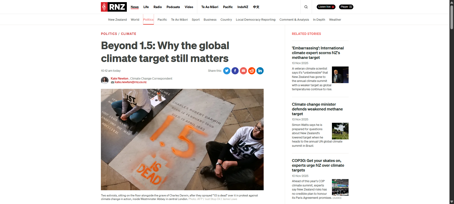 The Parliamentary Commissioner for the Environment condemned the methane review as a “purely political exercise” with “no new science to justify” weakening targets. Professor James Renwick, Coordinating Lead Author for the IPCC Sixth Assessment Report, stated the government’s approach “in no way” represents Aotearoa’s “highest possible ambition” under the Paris Agreement. Dr. Andy Reisinger, Vice-Chair of IPCC Working Group III and Climate Change Commissioner, explained that weakening methane while maintaining overall ambition would require impossible offsets—the “equivalent to tripling all of our other emissions out to 2050.”
