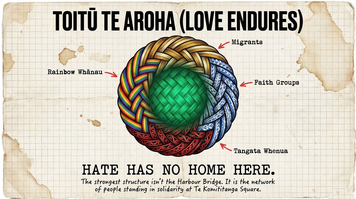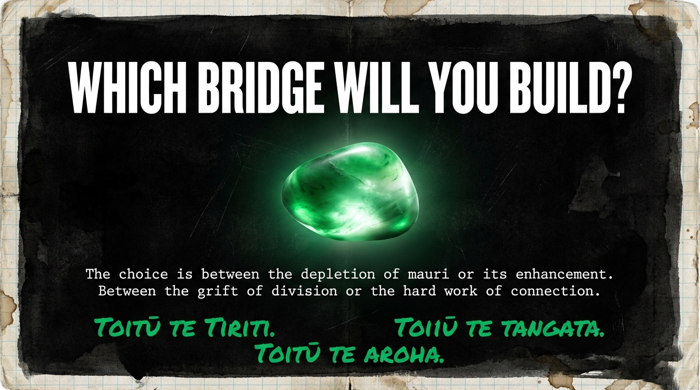 This is the bridge Aotearoa needs. Not steel spanning water, but solidarity spanning difference. Not permission from the state, but recognition of shared humanity. Not weaponized culture, but culture as collective protection.