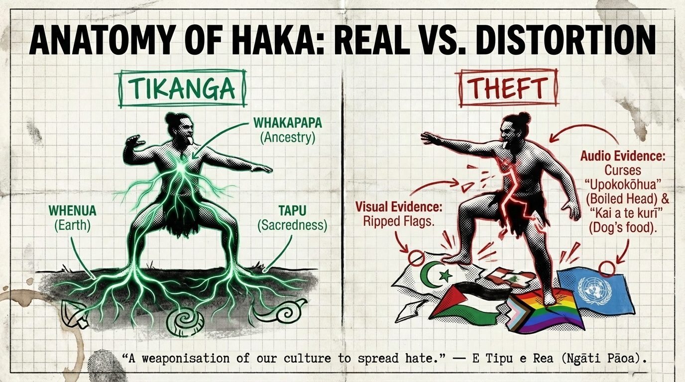 - Tapu: Sacred restriction that protects spiritual integrity. Haka carries tapu because it connects to ancestors and whakapapa. Using it to vilify other faiths is like defecating in a cathedral—except worse, because the desecration is weaponized.