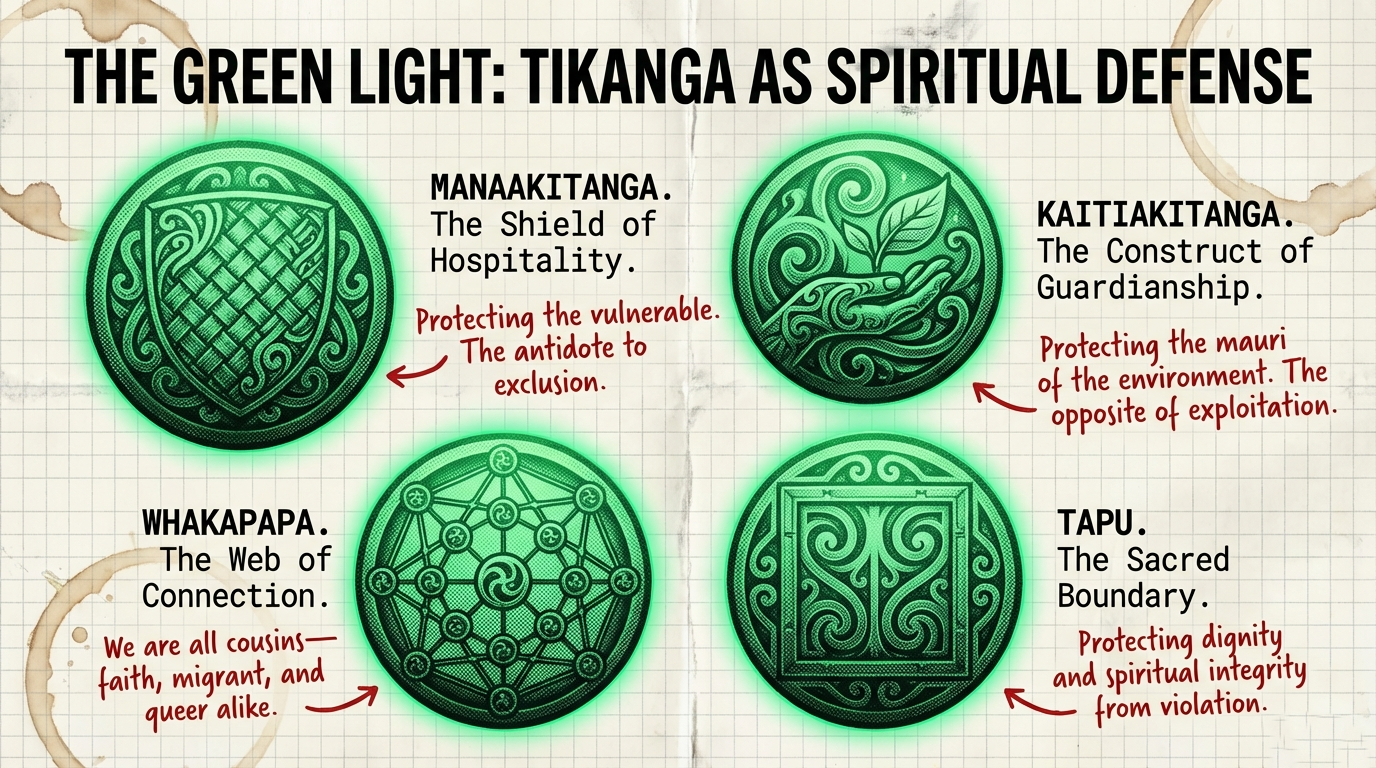 What Destiny Church does—storming libraries, disrupting religious processions, weaponizing haka to tear apart symbols of other faiths—is the inverse of kaitiakitanga (guardianship). It is systematic mauri depletion. It is spiritual vandalism.