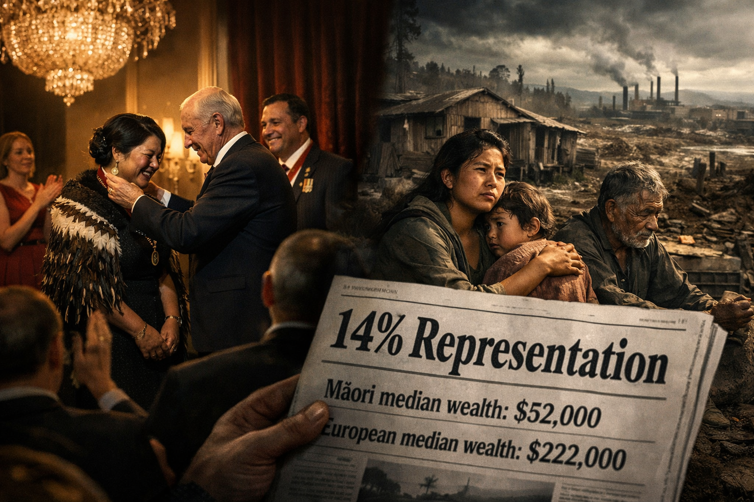 Drury claims Māori heritage through his father’s Ngāi Tahu connections, yet his $2.1 billion exists in a New Zealand where Māori median individual wealth is $52,000—4.2% of Drury’s billions per Māori person. Where is the Crown’s recognition of those fighting for Māori economic justice? Nowhere. The Crown honours integration into wealth extraction, not resistance to it.