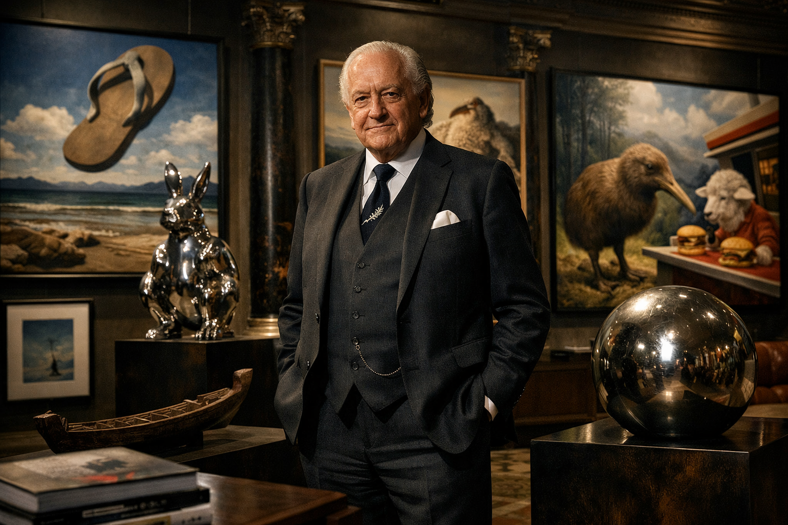Chris Parkin made his fortune through property speculation. He bought his first property at age 23 for $12,500, sold it years later for $30,000, and repeated this process for decades. He bought the Museum Hotel in 1993, filled it with his art collection, and sold it in 2015. He accumulated over 150 pieces of contemporary New Zealand art—private accumulation presented as cultural contribution.