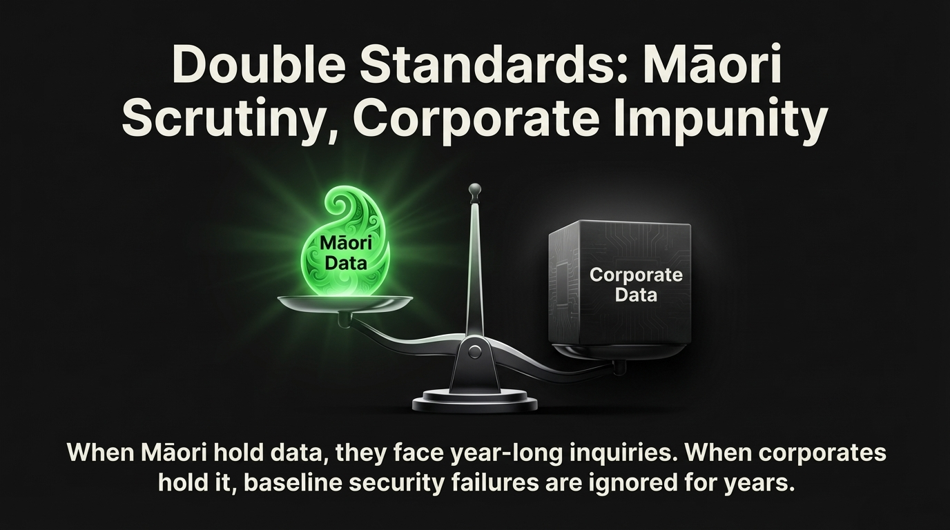 When Māori hold Māori data, the Crown demands gold-standard scrutiny. Māori organisations were dragged through year-long inquiries over Census and vaccination data with full vindication, as Te Pāti Māori co-leader Debbie Ngarewa-Packer documented. When corporates hold it, the Crown looks away—until 400,000 private health files sit on the dark web as she stated.