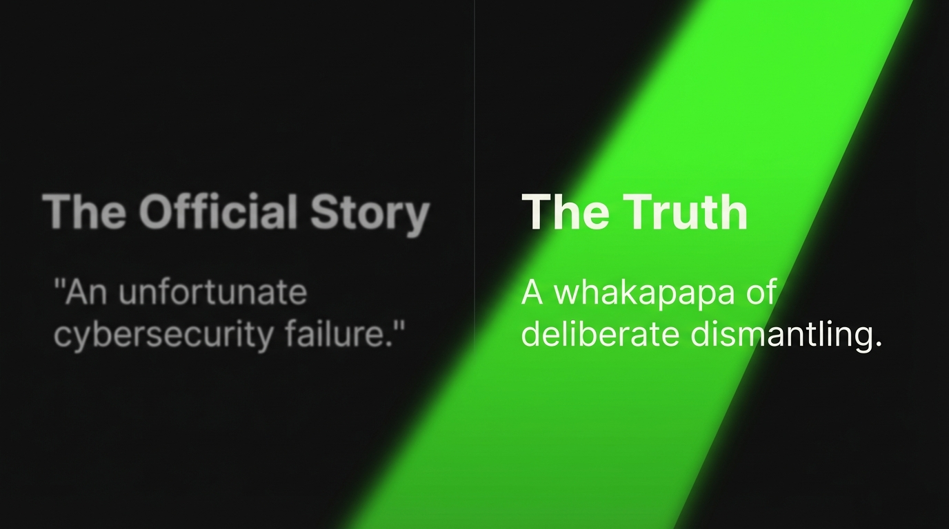 The digital vault holding 126,000 New Zealanders’ most intimate health secrets wasn’t cracked by sophisticated hackers wielding zero-day exploits. It was left open by a government that spent years dismantling the very expertise meant to guard it—then expressed shock when thieves walked through as reported by RNZ and confirmed in the government’s official response. This is not a cybersecurity failure. This is a whakapapa of deliberate dismantling, ideological vandalism, and Crown breaches of Te Tiriti that culminated in Māori health data—taonga tuku iho—becoming tradeable commodities on criminal markets.