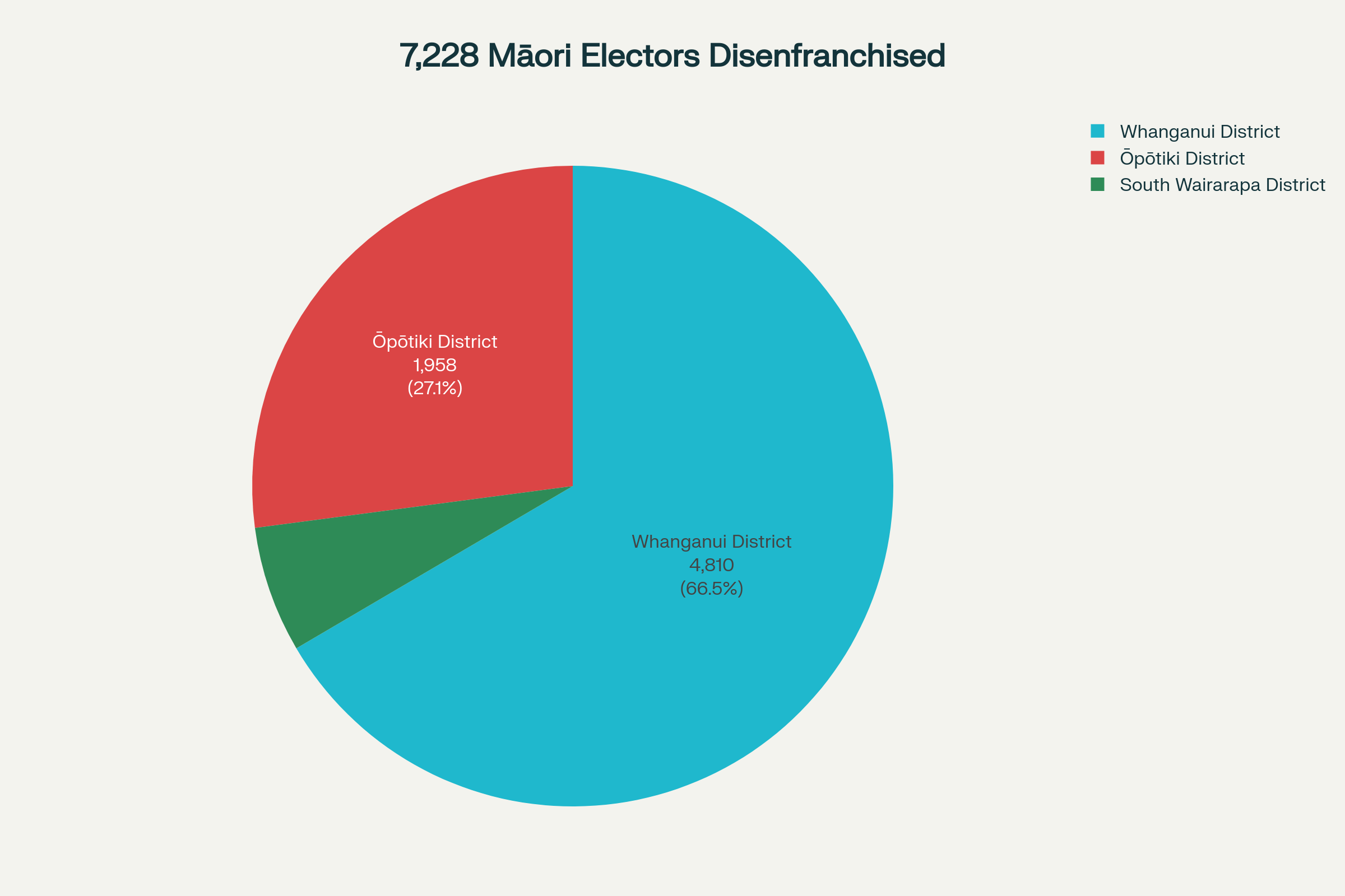 The "printing errors" affecting Maori ward candidates across three districts reveal coordinated suppression. Ten Maori candidates were systematically omitted from official voting booklets, affecting 7,228 Maori electors.
