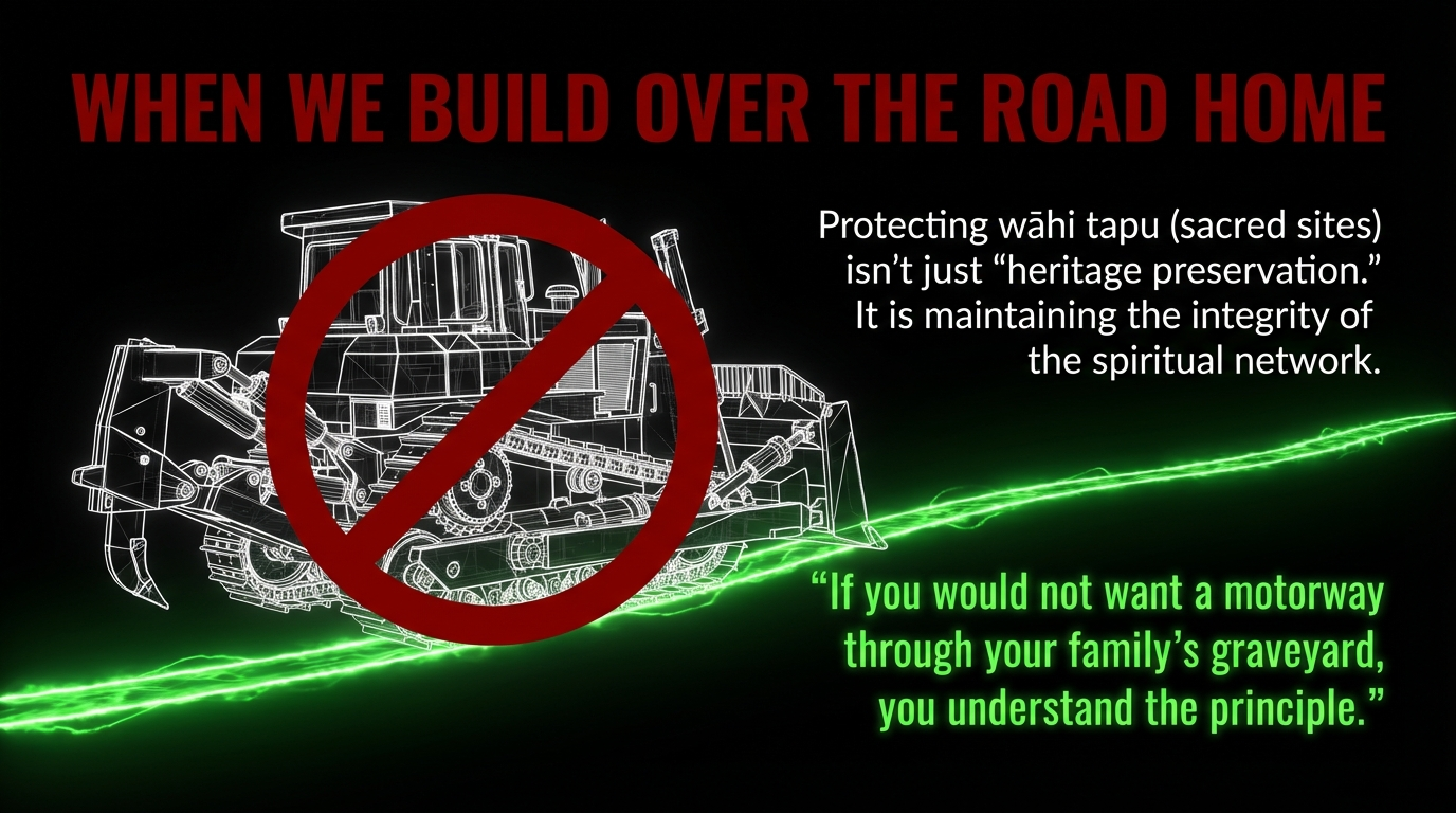 - Protecting urupā and significant headlands is not “heritage preservation”; it is maintaining the integrity of the pathways that hold relationships between the living and the dead.