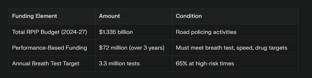 Transport Minister Simeon Brown’s $1.3 billion Road Policing Investment Programme (RPIP) 2024-2027 contains a $24 million annual incentive payment tied to meeting targets—including 3.3 million breath tests per year. As NZTA’s performance reporting documents confirm, this “delivery-dependent funding“ creates “strong financial incentives for metrics to be delivered.”