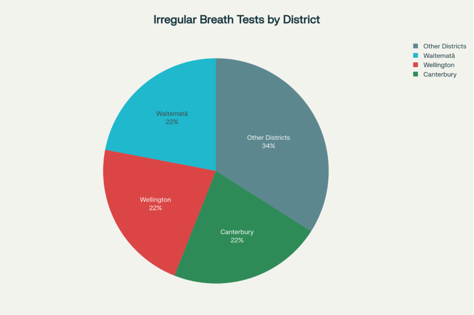 Waitematā, Wellington, and Canterbury districts together made up two-thirds of the total irregular tests identified. These are not marginal outposts—they represent the country’s major metropolitan centres and include the nation’s capital.