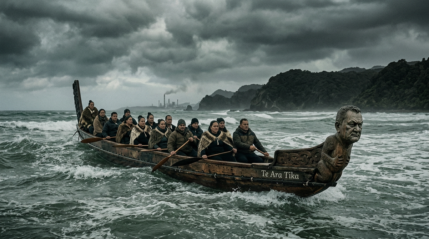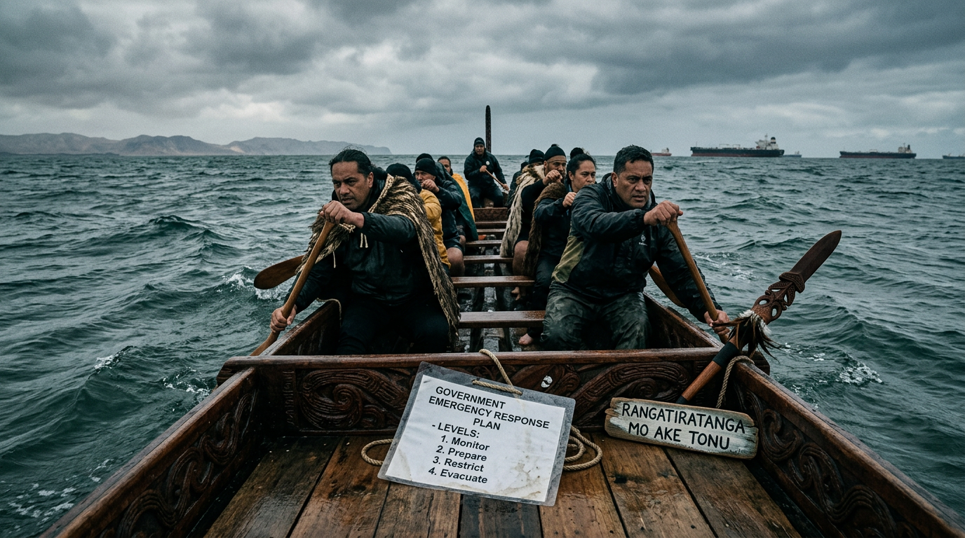 This government — this neoliberal, white supremacist construct masquerading as governance — has spent two years on watch while the ama rotted. They sold the dry dock. They outsourced the paddles to Singapore. They replaced the navigator with an MBIE spokesperson holding a four-level laminated card.