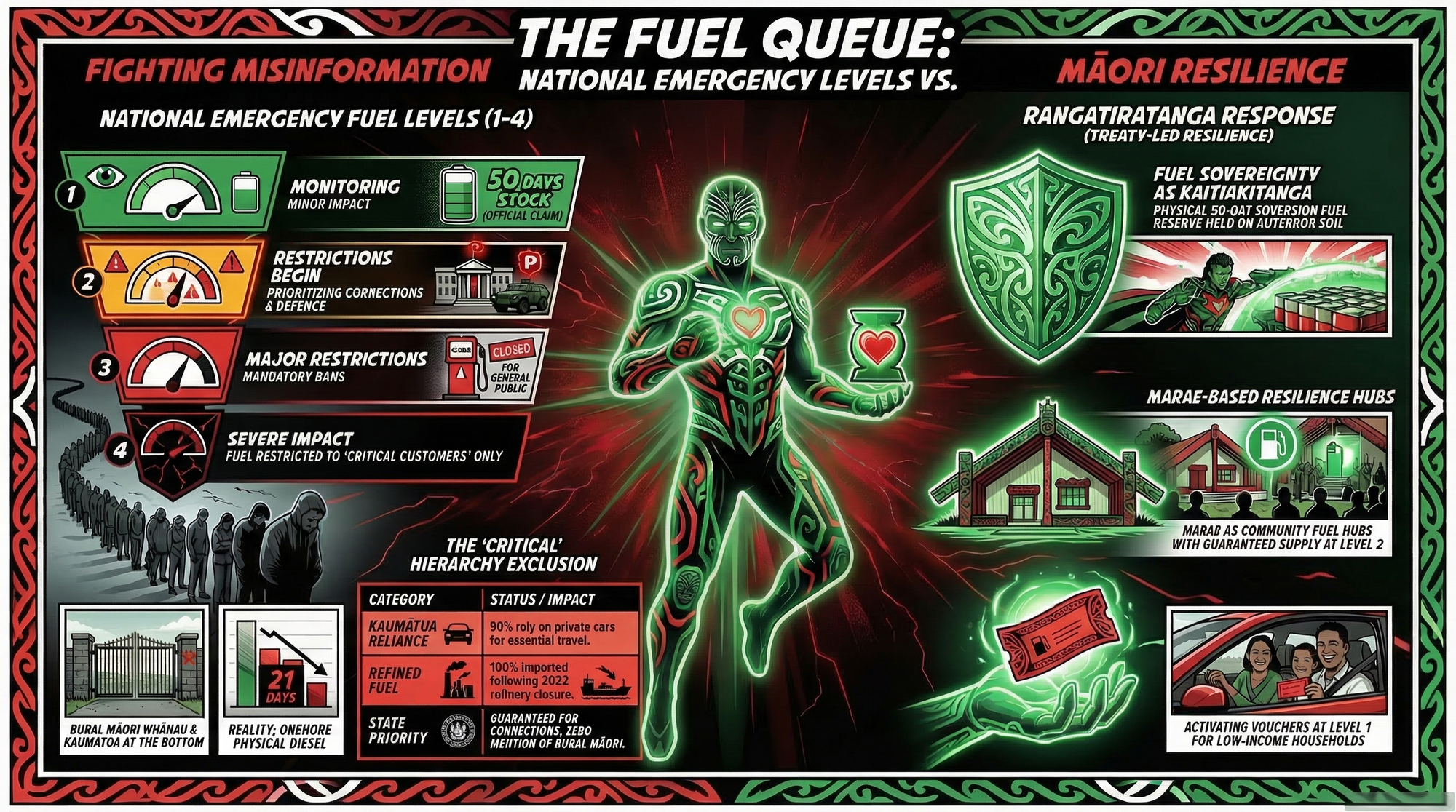 "WHEN THE PETROL TANKER RUNS DRY: How a White Supremacist Neoliberal Government Left Māori at the Bottom of the Fuel Queue" - 14 March 2026