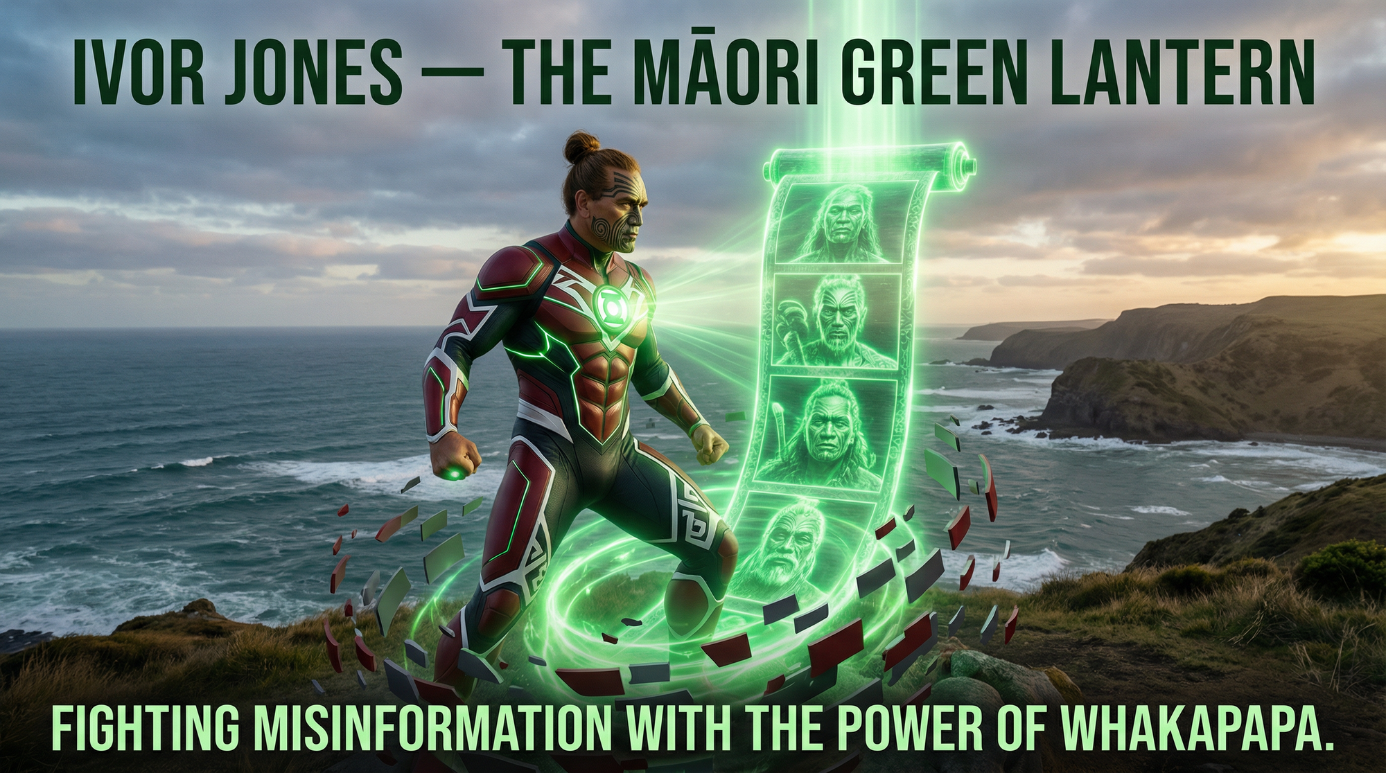 Ko ahau ko Ivor Jones — te Māori Green Lantern. Taiaha raised. Ring charged. Let the light burn.