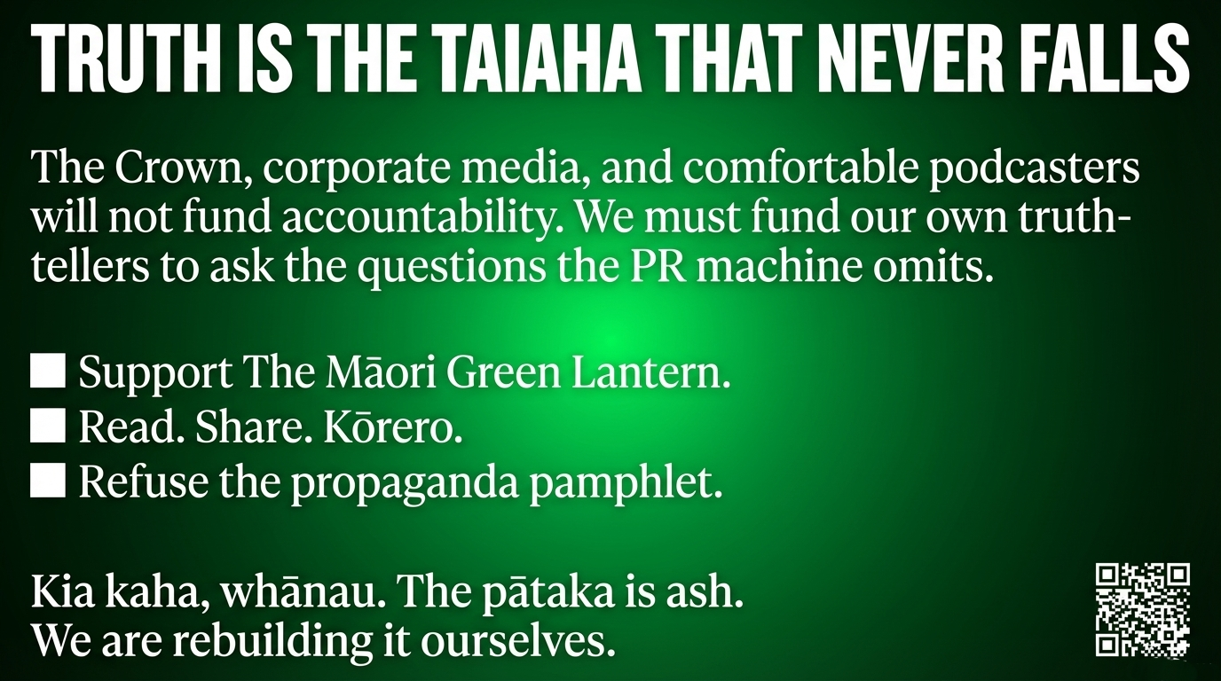 For those ready to fund the accountability that the Crown, Dom Harvey, and corporate media will never provide: support via Koha — The Māori Green Lantern.