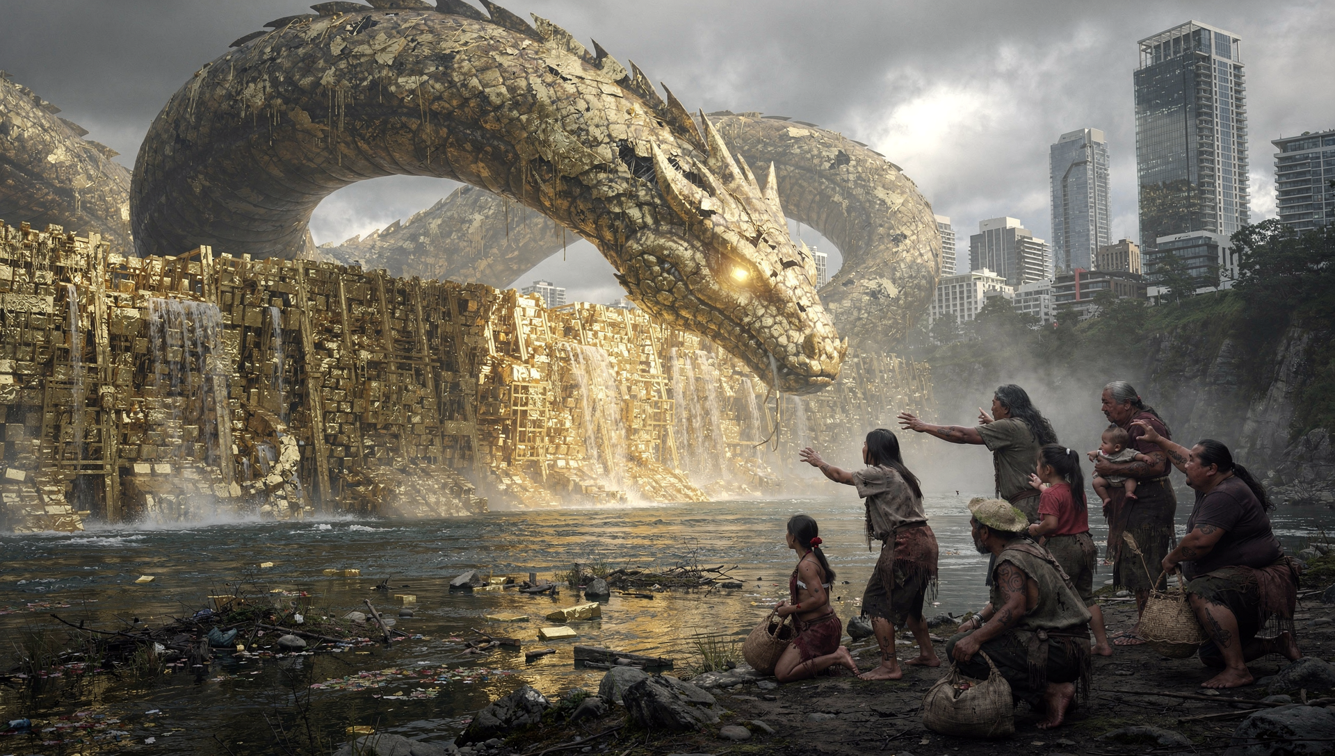 And this theft is not just economic. It is cultural and spiritual. The taniwha was supposed to protect the awa. Instead, the corrupted taniwha has dammed it. The kaitiaki has become the hoarding predator. The mana of community has been replaced by the greed of individuals.