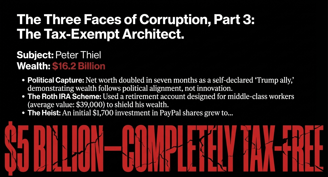 This is not a loophole. This is a designed architecture of theft. And Thiel is not alone—other billionaires have used similar strategies to hide billions from taxation.