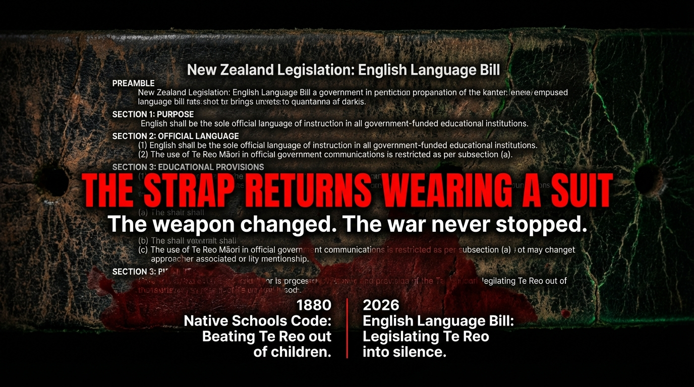 They beat te reo out of our mouths with leather straps. Now they legislate it into silence with two pages of colonial paper. The weapon changed. The war never stopped.