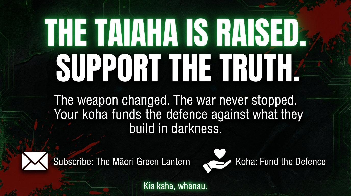 If you are unable to koha, no worries! Subscribe or follow The Māori Green Lantern, kōrero and share with your whānau and friends — that is koha in itself. Every share is another voice refusing to let the carved door close.
