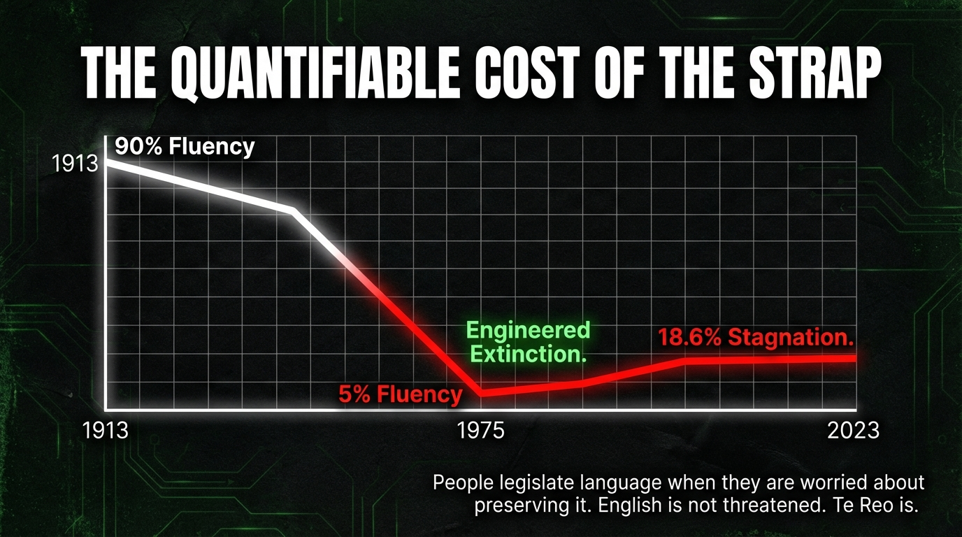 There is an image seared into the collective memory of every Māori whānau in this country. A child, standing in a school corridor in 1920, palm extended, receiving the strap for the crime of speaking their own language. The inspector has decreed: English is the language of progress. Te reo Māori is the language of savages. The child learns. The child stops speaking. The child grows up and — terrified their own children will suffer the same punishment — refuses to teach them te reo.