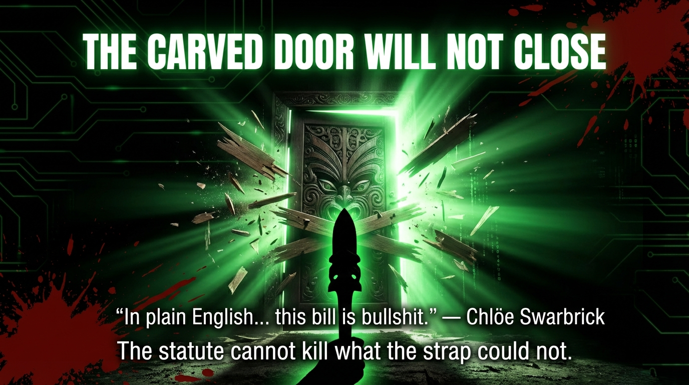 Te Pāti Māori MP Oriini Kaipara delivered her entire contribution in te reo Māori. This was not just a speech. It was an act of resistance — the carved door refusing to close.