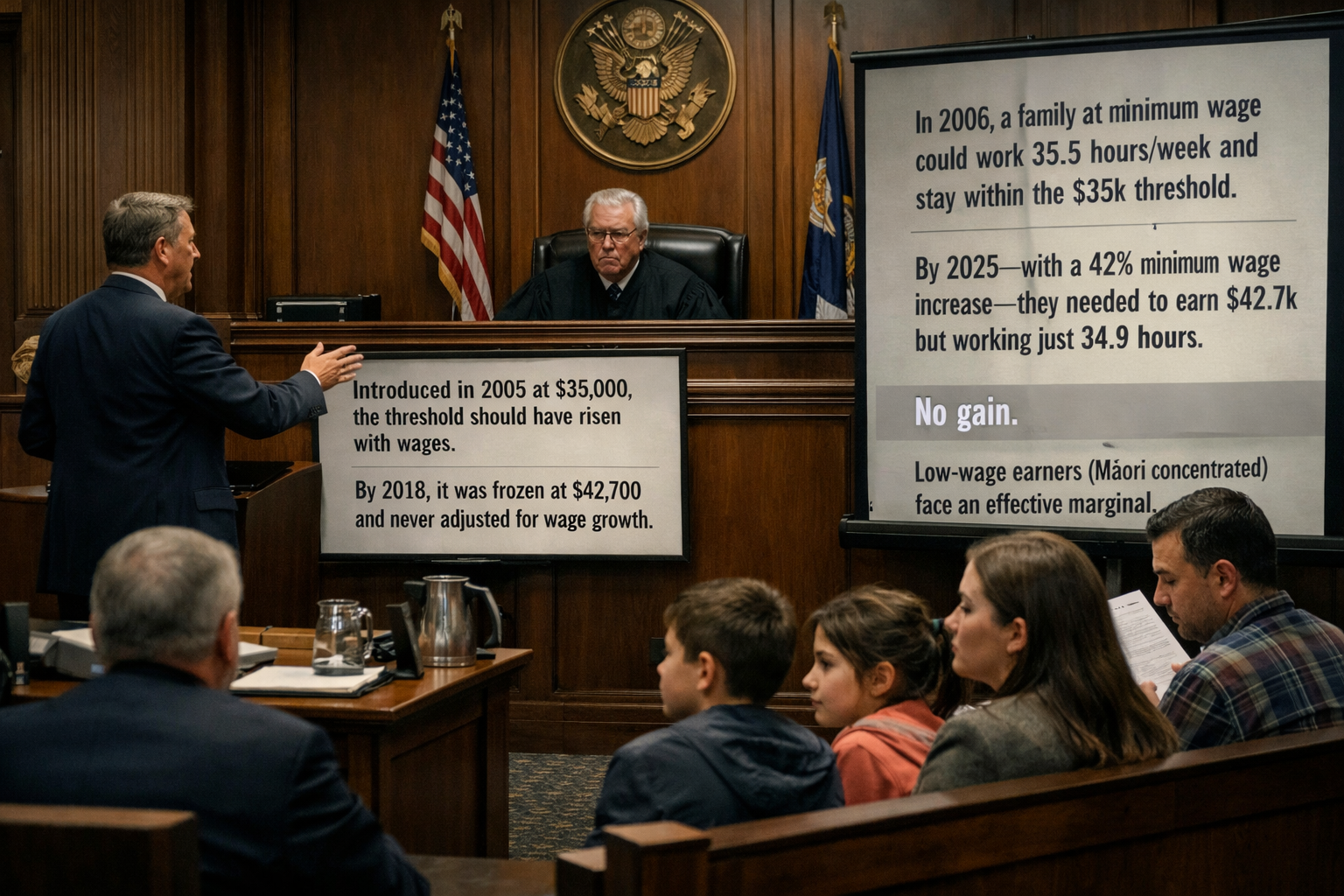 - Result: Low-wage earners (Māori concentrated) face an effective marginal tax rate of 27% on earnings above the threshold, compared to the standard 17.5% income tax rate—a disincentive to work more hours.
