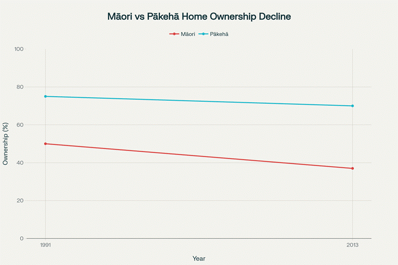 The result? Māori home ownership collapsed from 50% (1991) to 37% (2013)—a 26% decline—while Pākehā ownership dropped only 6.7%.[11][12]